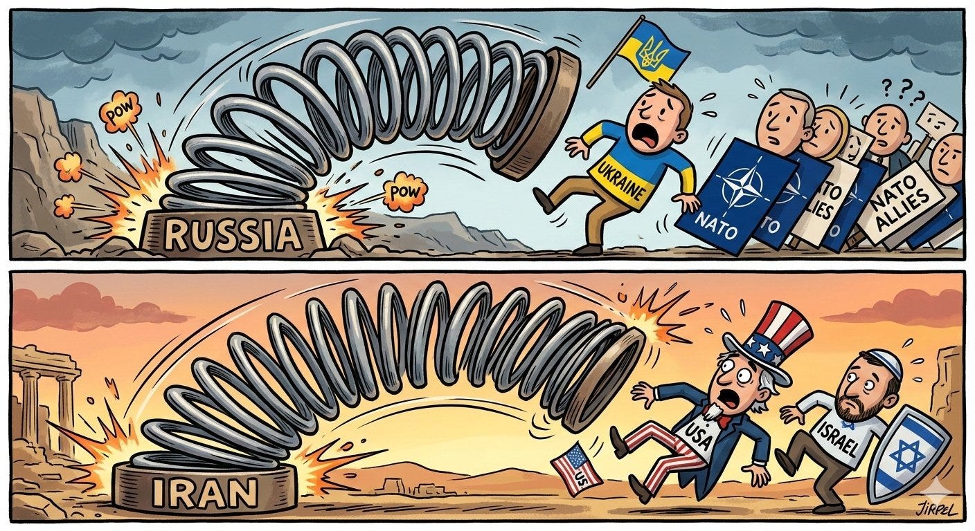 What strikes me most about our leaders - and media’s - current stance is that they don’t seem to appreciate what they have done by killing the Ayatollah Khamenei, and then allowing crowds of israel-loving Iranians here to celebrate his murder. They also continue to repeat the lies about ‘the regime’ killing thousands of protestors, the primary false flag that started their ball rolling.
